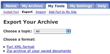 still in My Tools – Export (left-) click on Furl XML format and save the result (which will look odd) as furl.xml to your disk;